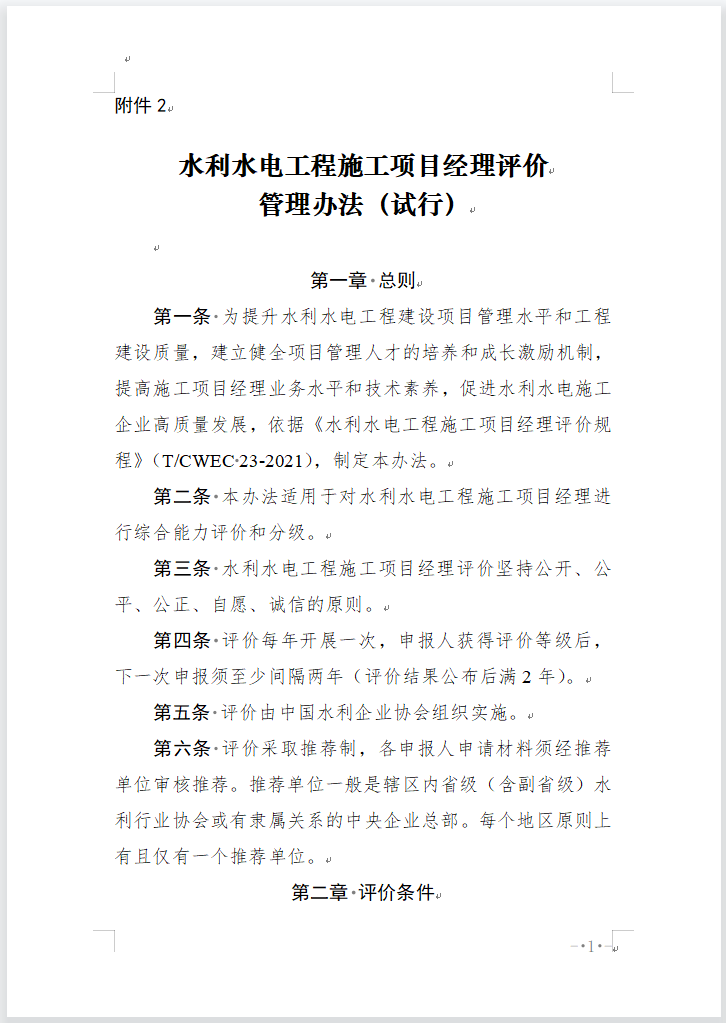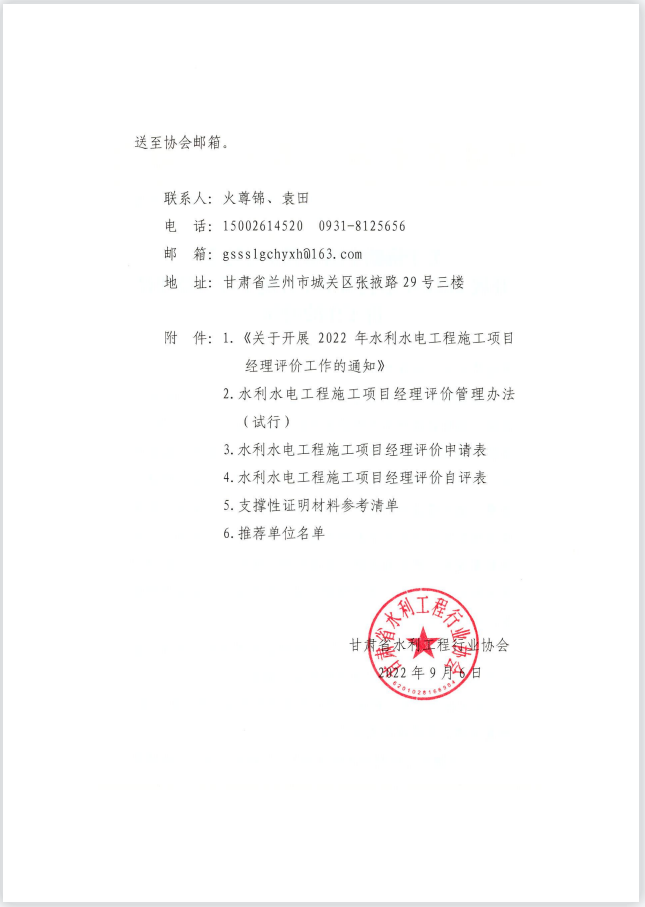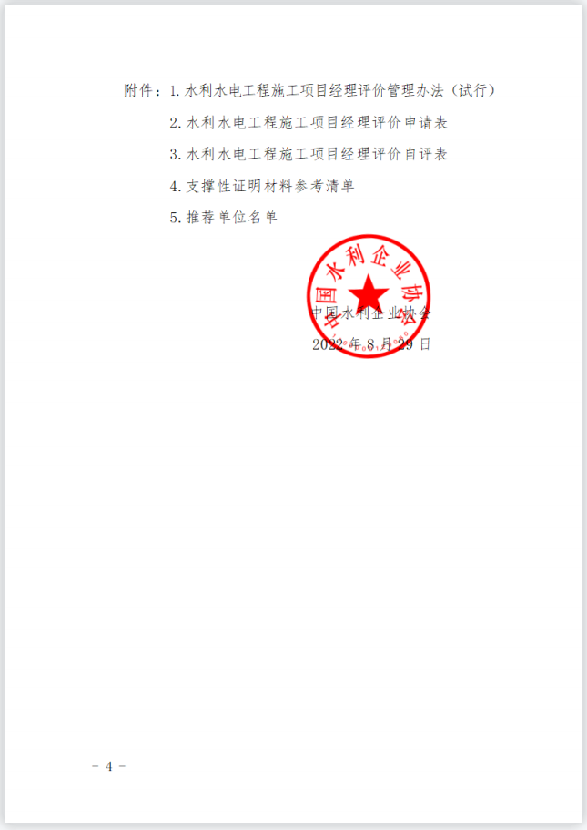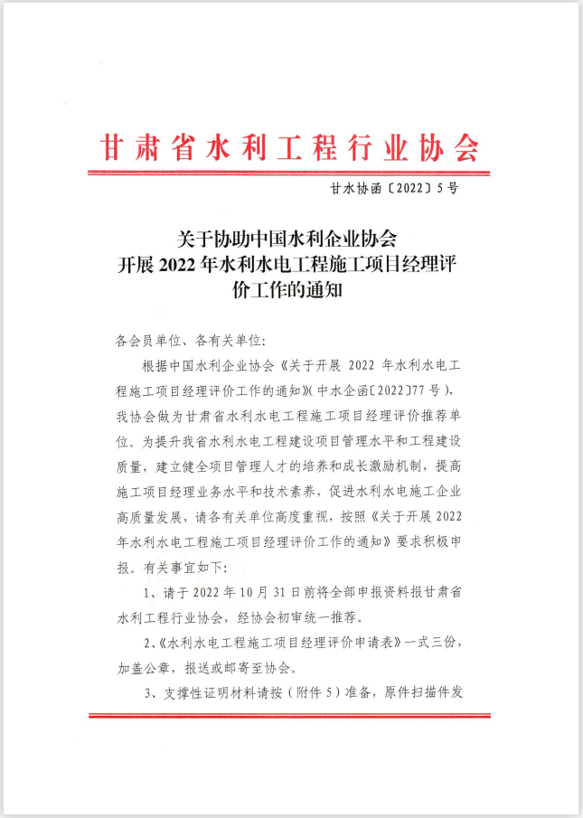 关于协助中国水利企业协会开展2022年水利水电工程施工项目经理评价工作的通知